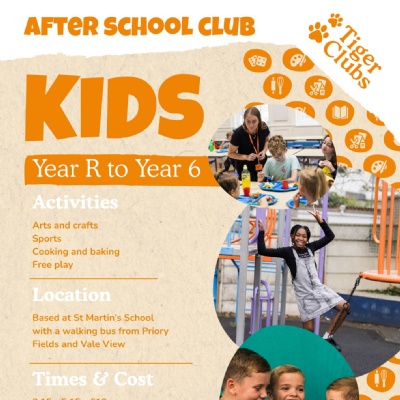 Tiger Clubs is an external wraparound care provider that will be based at St Martin's School and open to children at all Whinless Down Academy Schools, with a walking bus from Vale View and Priory Fields.